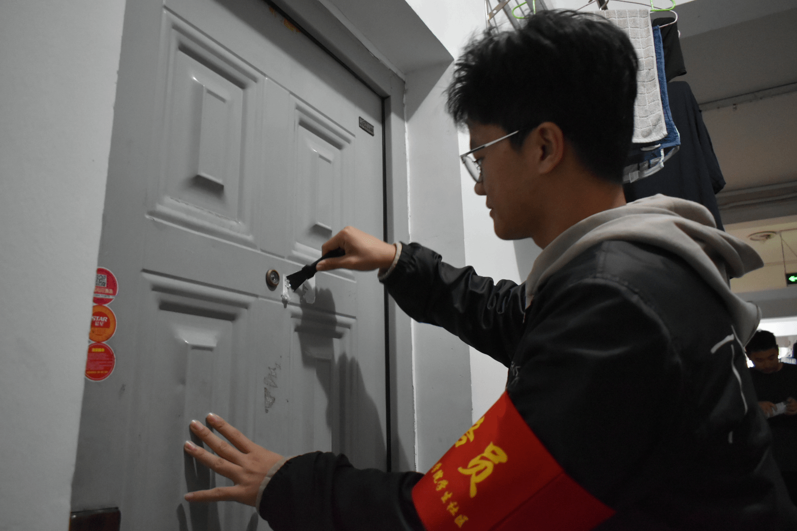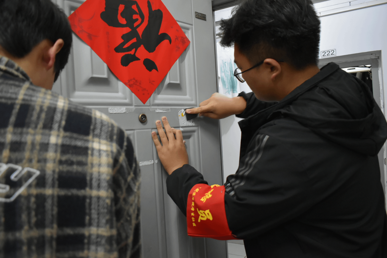 活动中,大家分工明确,有条不紊地展开各项清洁任务。有的同学认真细致地将床柜摆放整齐,有的则拿着扫帚和拖把卖力地清扫屋内的每一个角落,还有一些同学不辞辛劳地用工具铲除门外那些已经褪色或破损的贴纸。每个人都全情投入,干得不亦乐乎。