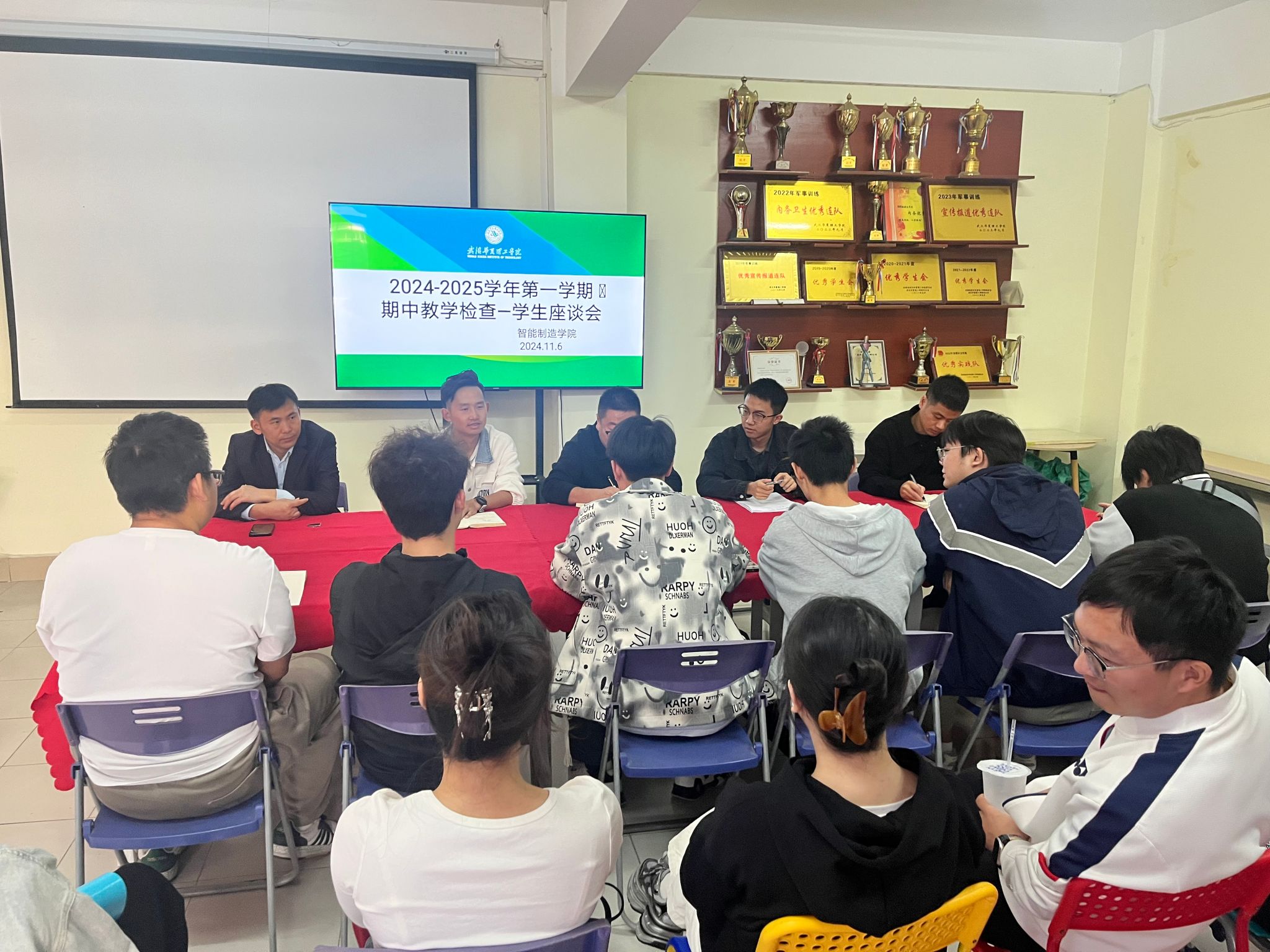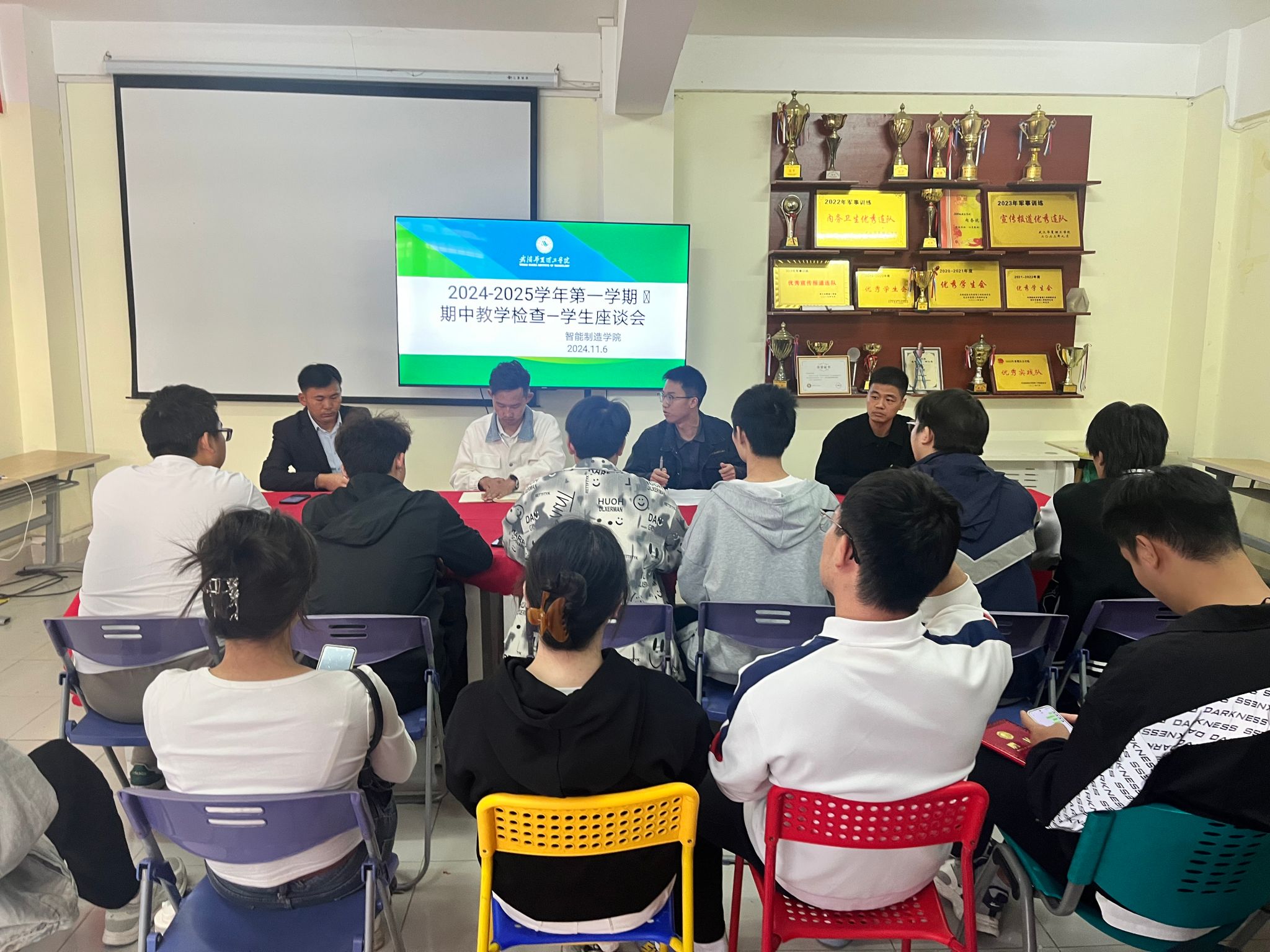 11月6日,智能制造学院在逸思楼学生社区学生思政中心举行了2024-2025学年第一学期期中教学检查学生座谈会。学院学工办主任向胜涛、实验中心、汽服、机自系部老师、学生事务部和团委代表老师以及2021级和2022级专升本学生代表共同参加了此次会议。