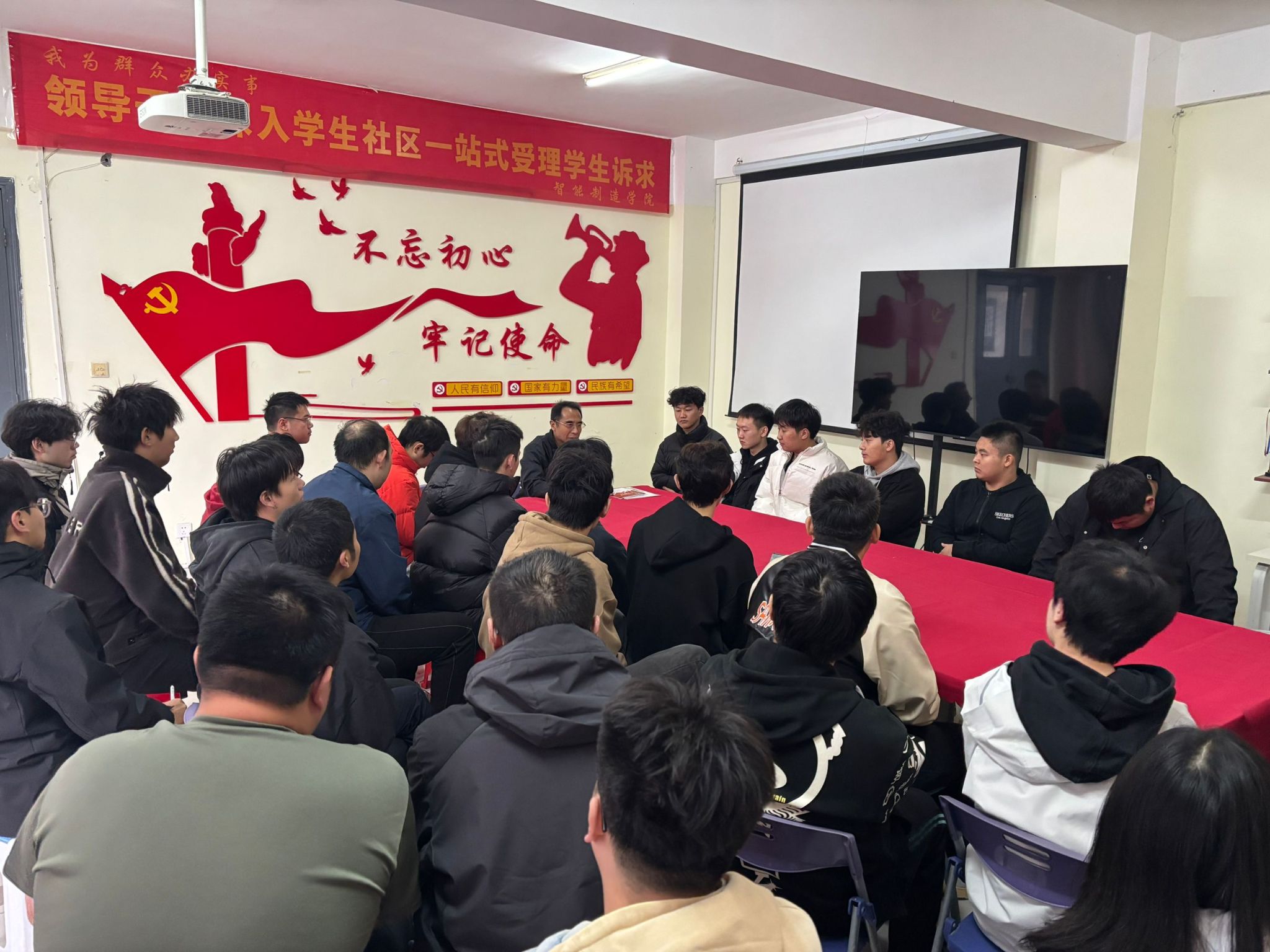 2024年11月19日下午两点,智能制造学院机自3221班在2栋宿舍楼学生活动中心召开了本学期首次班级座谈会。本次会议旨在加强师生沟通,关注学生健康,指导期末复习,并了解学生近期日常生活问题。班主任包显龙老师出席会议并发表重要讲话。