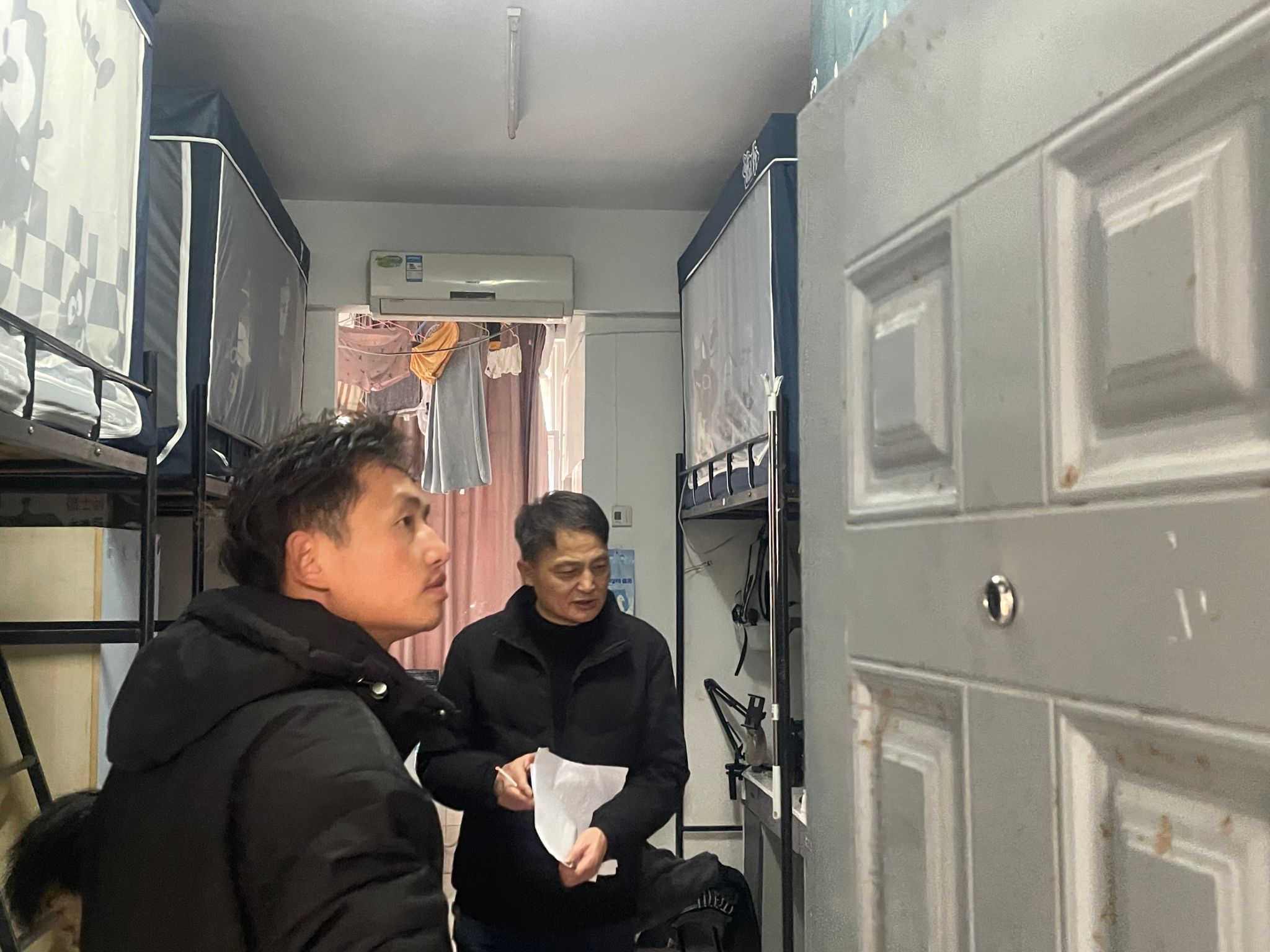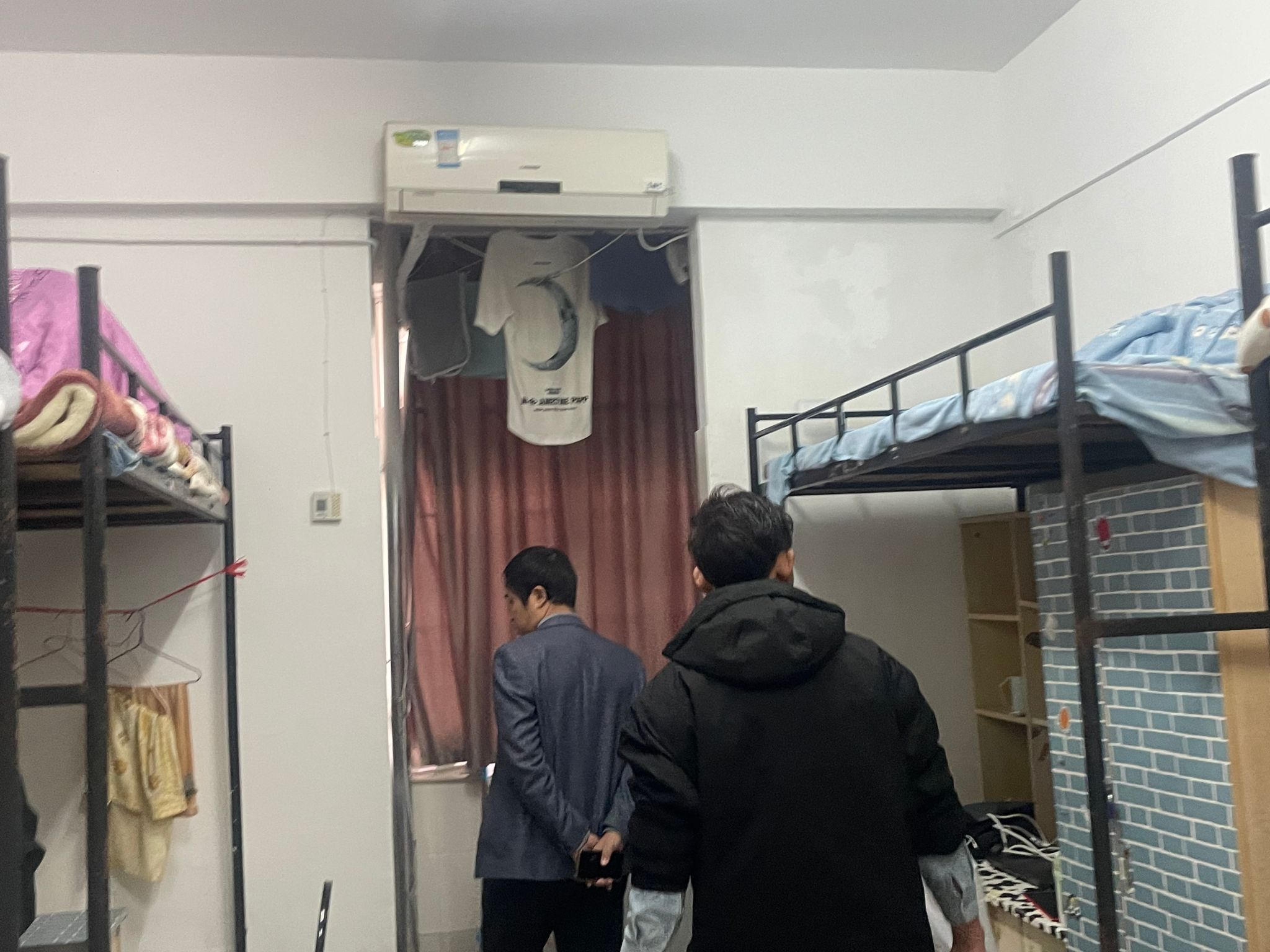 检查过程中,老师们重点针对宿舍用电安全、消防安全以及卫生状况等方面进行了细致入微的检查。严格检查了各宿舍是否存在违规使用大功率电器、私拉乱接电线等安全隐患,确保每间宿舍的用电行为均符合学校安全规定,有效预防电气火灾事故的发生。检查过程中,靳书记还向同学们积极宣传寝室消防安全知识,进一步增强同学们的消防安全意识。同时,他还耐心询问了同学们的学习生活情况,了解大家在学业、心理等方面的需求与困惑,并温馨提醒同学们注意合理安排作息时间,保持良好的身心状态。