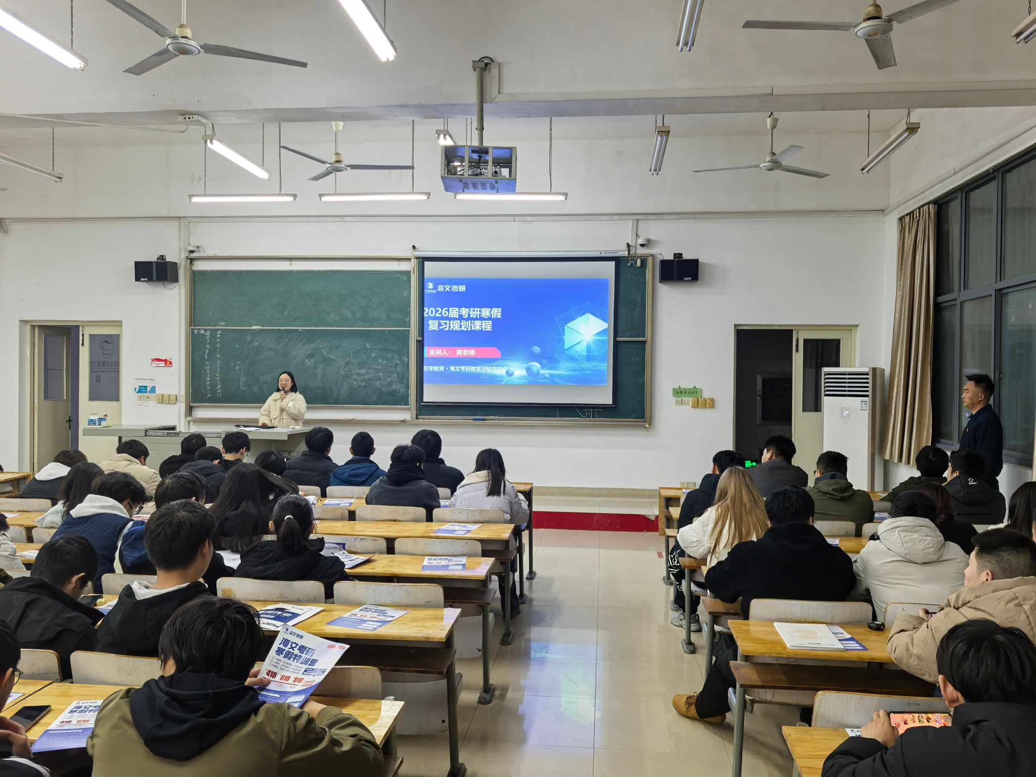 为给怀揣升学梦想的 22 级学生答疑解惑、精准规划考研路径,12月8日,我院特邀海文考研机构举办专题讲座,吸引众多有考研意向的同学踊跃参与。此次活动旨在帮助学生洞悉考研形势,合理筹备复习计划,从容应对升学挑战。