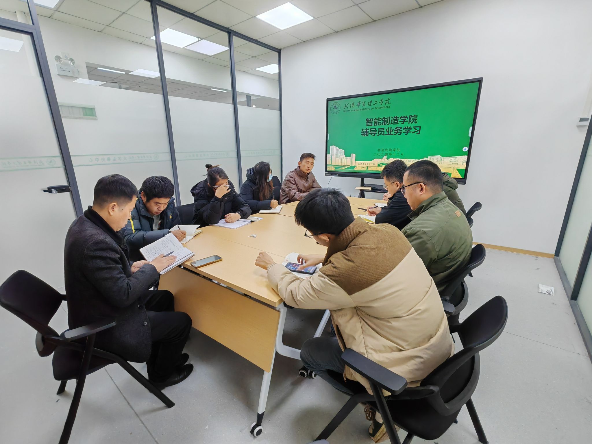 12月27日上午,智能制造学院于辅导员会议室成功召开学生工作会议暨辅导员业务学习会。学院党总支副书记靳路民、党总支组织委员祝炜黎、学工办主任向胜涛以及全体辅导员齐聚一堂,共同为学院学生工作谋篇布局。本次会议由学工办主任向胜涛主持。