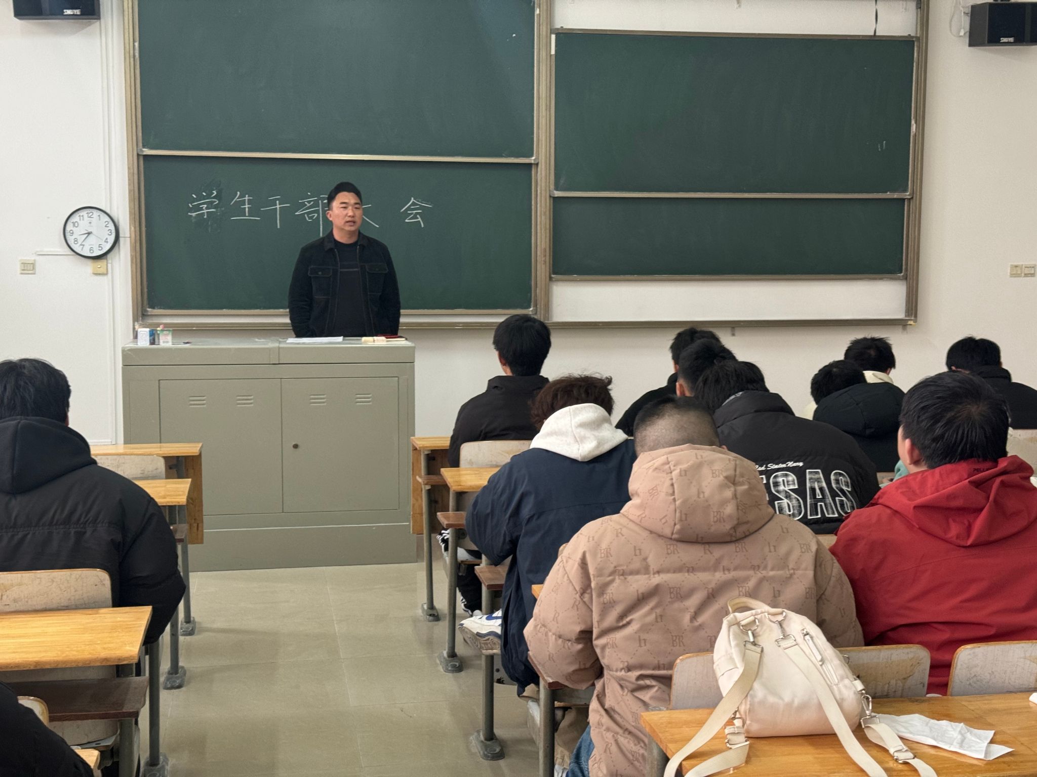 会上,马文明辅导员率先着眼于班干部职业规划,强调学生干部经历对个人未来职业发展的深远意义,鼓励大家结合自身兴趣与优势,提前谋划,借助学生工作平台锻炼领导力、沟通力等关键能力,为步入职场或深造做好铺垫。