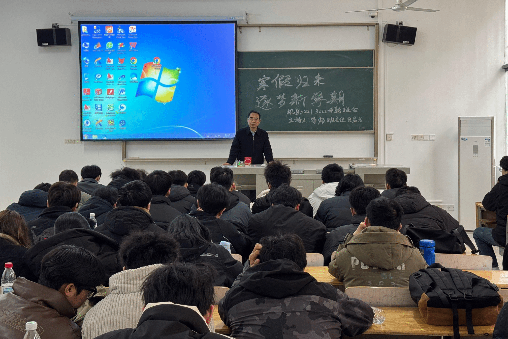 2月20日中午,机自3221、3222班在3-104召开了“寒假归来,逐梦新学期”的主题班会,全体同学到会,班会由导师班主任包显龙老师主持;包老师首先对开展本次班会的必要性进行了简要说明;这次班会旨在帮助同学们迅速收心,快速适应新学期的学习节奏,明确新学期目标,以饱满的热情投入到学习生活中。