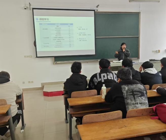 会议中,宋老师主要就课程学习和学科竞赛进行了讲解。首先,宋老师对本学期课程进行了梳理,包括4门通识课,5门专业基础课,1门专业选修课和2门集中实践课程。强调了上课三带,要求同学们认真对待过程考核,落实课程复习,确保顺利通过每门课的考试。班会第二个内容是介绍专业竞赛,对汽车服务工程专业学生可以参加的竞赛进行了介绍,要求同学们积极参加,提前准备,并希望同学们全部参与大学生创新创业训练项目。最后,宋老师对英语学习提出了期望,希望同学们做好持续准备,备考四级。