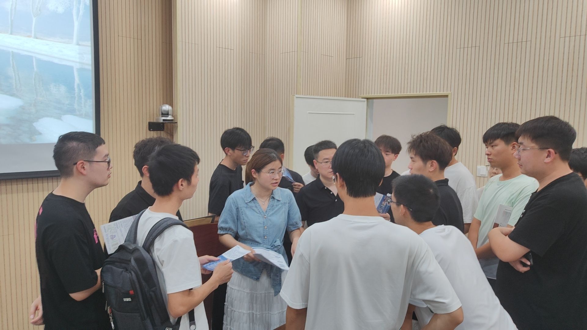 宣讲结束后,学生们迅速包围企业代表进行咨询,手持简历向工作人员提问,内容涵盖专业对口岗位要求、实习周期、技能培训安排等。招聘团队耐心解答疑问,同时结合学生简历与专业背景,初步沟通岗位适配度,部分学生现场达成初步求职意向。