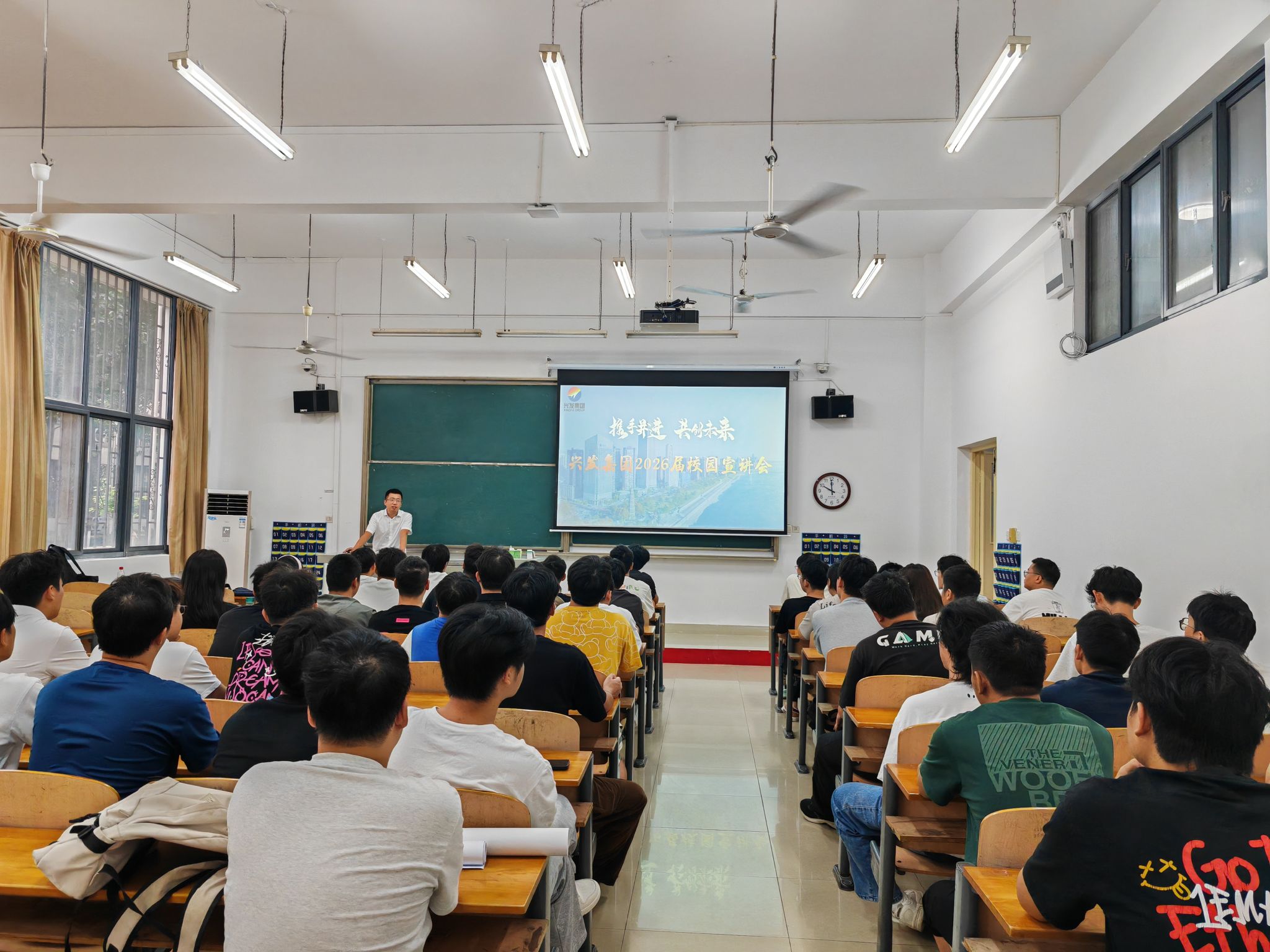 招聘会上,王经理围绕兴发集团的核心产业布局、智能制造相关岗位需求展开详细介绍,同时针对学生高度关注的薪资待遇、工作时长、住宿保障及岗前培训体系等内容逐一讲解,信息详实、条理清晰,让在场学生全面了解企业情况与岗位福利。