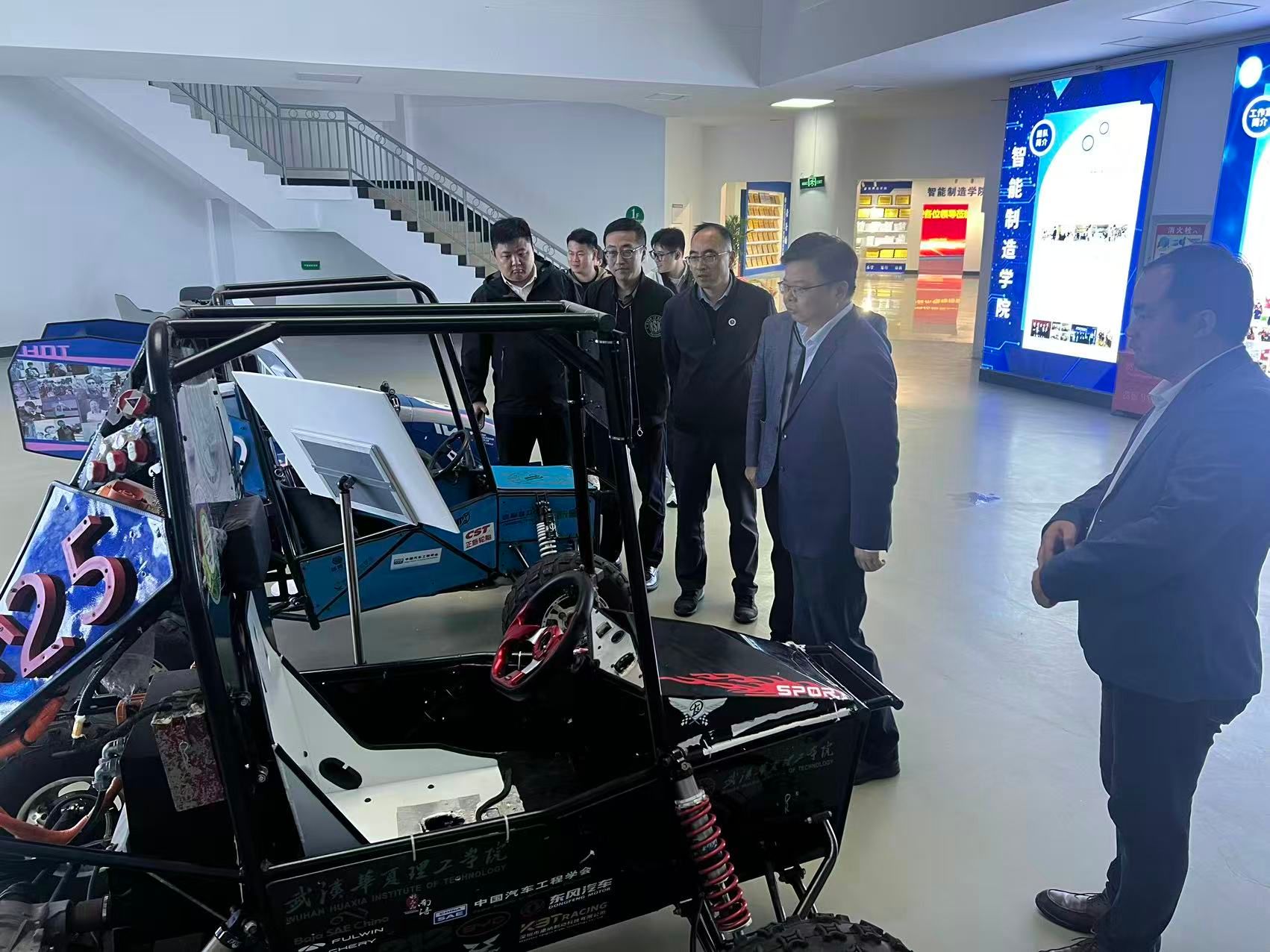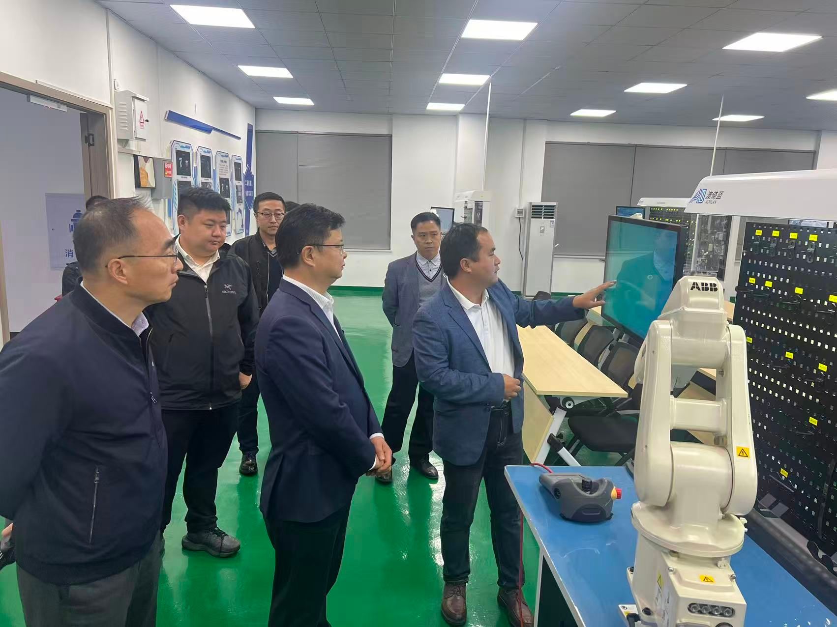 在实验中心,汤主任详细介绍了学院基本情况,实验中心建设概况,参观了工业机器人拆装实训室、工业互联网实训室,观看了学生科技创新成果。考察团对学生团队自主研发的汽车表现出浓厚兴趣,当场邀请团队赴吴兴区参与企业技术攻关。鲁有铭部长表示,学院的创新创业教育成果令人印象深刻,期待未来能有更多师生团队到吴兴区施展才华。