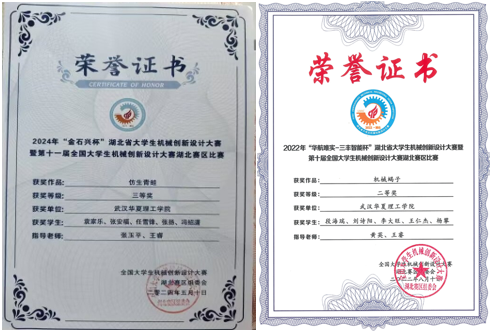 近3年,机械电子工程专业学生在睿抗机器人开发者大赛、全国机械创新设计大赛、“创青春”全国大学生创业大赛、三维数字化创新设计大赛等各类赛事中获国家级奖项18项;省级奖项44项。
